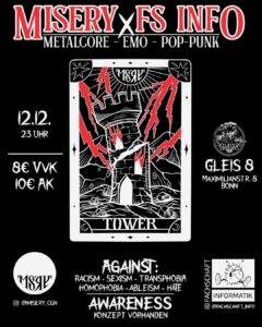 Together with the DJs from Misery Party in Cologne, we’re putting Bonn back on the map for the metalcore community 🔥🕗 When: Friday, 12 December 2025, from 11 p.m.